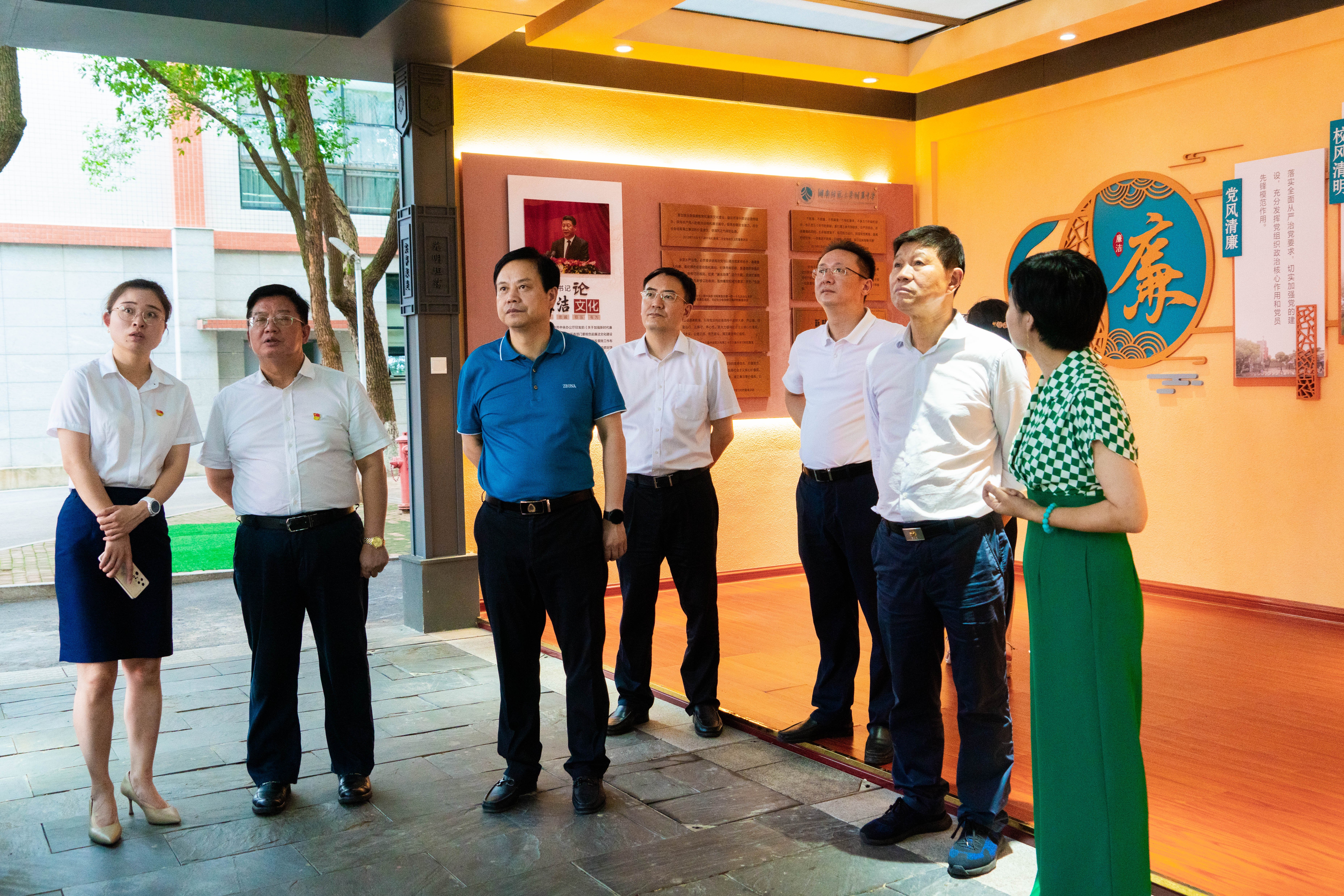 在附属中学,巡回指导组一行参观了惟一书屋、攀登广场、洁齐亭、廉洁文化长廊、心理发展中心、田径场等,详细了解了学校发展历程和教育教学成果,听取了学校开展主题教育的情况汇报。
