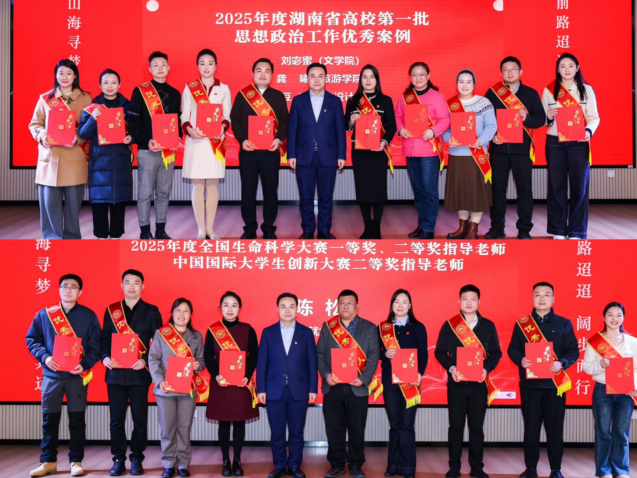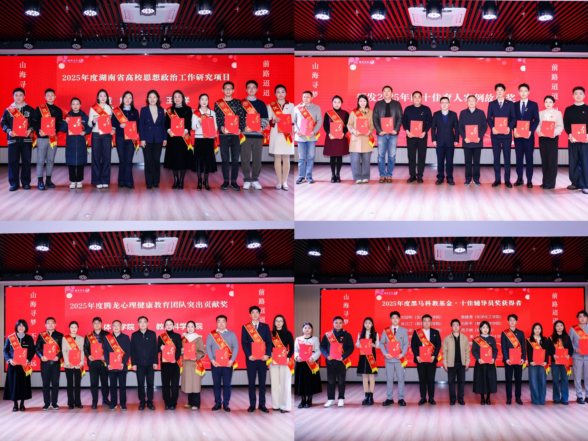 领导嘉宾分别为2025年度各类优秀辅导员、育人案例、心理健康教育先进以及优秀个人与集体等获奖代表颁奖。