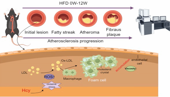 进一步研究发现,在氧化低密度脂蛋白诱导的泡沫细胞形成过程中,Hcy水平升高与细胞微黏度增加呈显著正相关,揭示了Hcy参与调控细胞微环境变化的新机制。同时,团队在ApoE⁻/⁻动脉粥样硬化小鼠模型中实现了对疾病发展过程中Hcy与黏度动态变化的实时成像,验证了该探针在体内复杂病理环境中的应用潜力。值得关注的是,研究还发现叶酸和维生素B₁₂干预可有效降低Hcy水平,并显著改善异常黏度变化,从而延缓AS进程。这一结果不仅从机制层面揭示了Hcy与疾病发展的内在联系,也为AS的营养干预和治疗策略提供了重要实验依据。该研究首次实现了Hcy与细胞微黏度的光谱正交同步成像,建立了二者在AS发生发展中的直接关联,为多参数协同成像探针的设计与应用提供了新思路。相关成果有望在相关疾病早期诊断、机制研究及疗效评估等方面发挥重要作用。