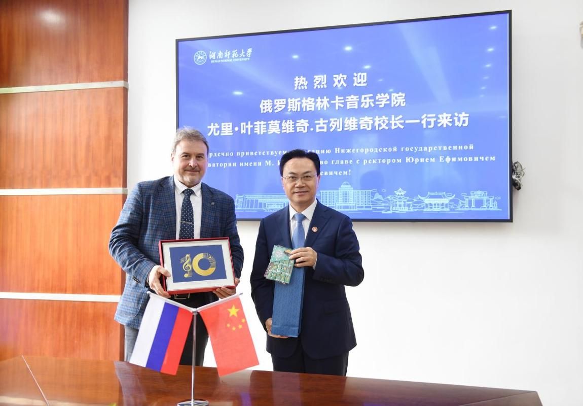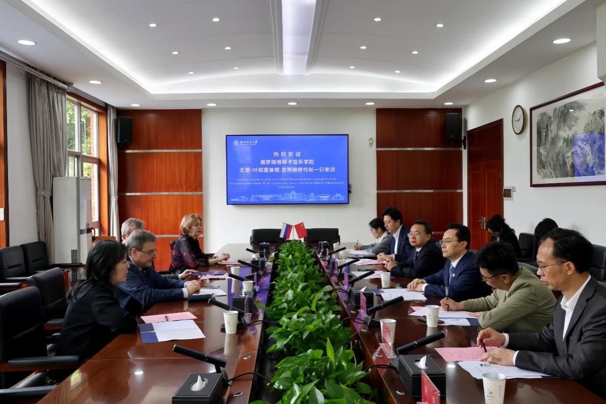 刘仲华对古列维奇校长一行的到访表示热烈欢迎,并对格林卡音乐学院长期给予合作办学项目的支持表示衷心感谢。他回顾了两校自2016年共同举办音乐表演本科专业中外合作办学项目以来的合作历程,指出该项目运行机制日臻成熟,已培养出一批专业基础扎实、具备国际视野的音乐人才,成为学校国际化办学的一张亮丽名片。他表示,期待双方以合作十周年为新的起点,以“中俄教育年”为契机,进一步拓展合作维度,共同推动项目向双学籍、双学位模式转型升级,持续提升项目的育人品质、国际影响与示范效应,携手为中俄人文交流与艺术教育合作注入新动力、谱写新篇章。