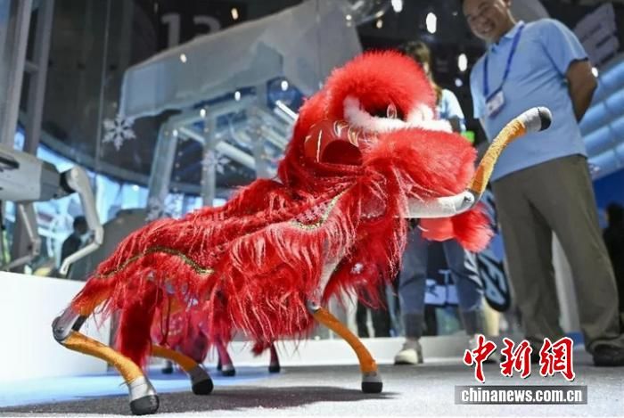 2025年5月22日,第二十一届中国(深圳)国际文化产业博览交易会开幕。图为一款“醒狮”机器人进行动态展示。中新社记者 陈骥旻 摄