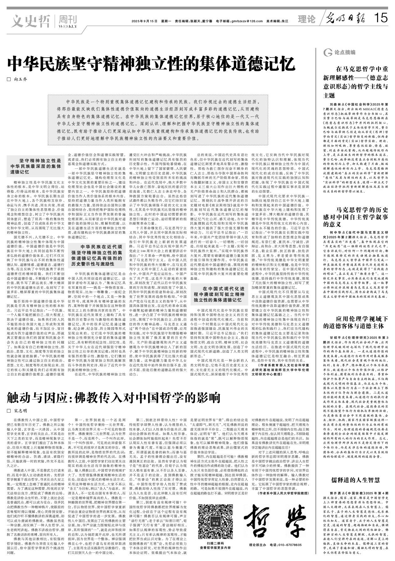 坚守精神独立性是中华民族最深层的集体道德记忆